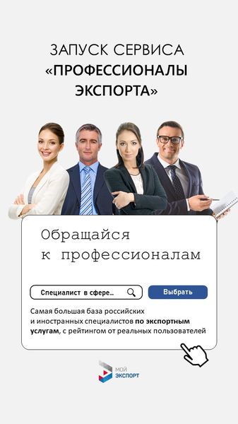 Регистрируйтесь на цифровой платформе «Мой экспорт» и выбирайте своего профессионала.