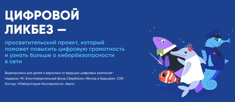 Проект включает в себя серию просветительских мультипликационных роликов и методических материалов для педагогов, которые на понятных примерах учат детей и взрослых азам цифровой грамотности и кибербезопасности. Видеоролики от ведущих цифровых компаний-лидеров — Благотворительный фонд Сбербанка «Вклад в будущее», VK, «Авито», «Лаборатория Касперского» — представлены на сайте проекта.