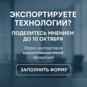 Для проработки конкретных направлений развития производства высокотехнологической продукции в Российской Федерации АО «Российский экспортный центр» проводится опрос по направлению «Высокотехнологический экспорт» среди производителей – экспортеров высокотехнологичной продукции и услуг.